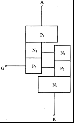 可控硅由两层P型和两层N型半导体交替构成。它的三个电极分别为阳极A、阴极K和控制极G。这个PNPN器件中间,形成了三个PN结J1、J2、J3,相当于三个二极管正反向相间串联而成。如果只在阳极A和阴极K之间加上电压,不管所加电压的极性如何,这三个二极管中至少有一个是处于反向偏置,因而不会导通,器件均处于截止状态。